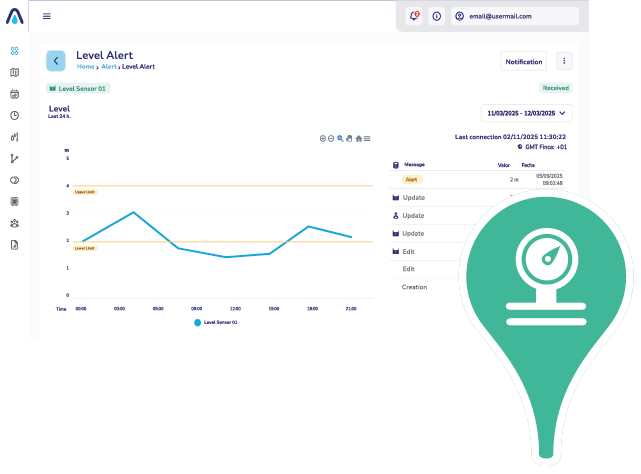 En cas de fuite, de variation critique de pression, de débit insuffisant ou d’usage anormal détecté, une alerte s’affiche sur la plateforme. Vous recevez également une notification en cas de batterie faible sur un dispositif.